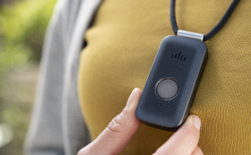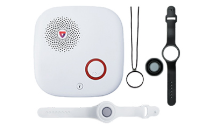 The at-home emergency devices come with a base unit and various wearable medical alert necklaces, panic button pendants, and emergency alarm bracelets.