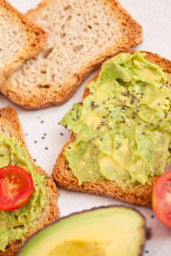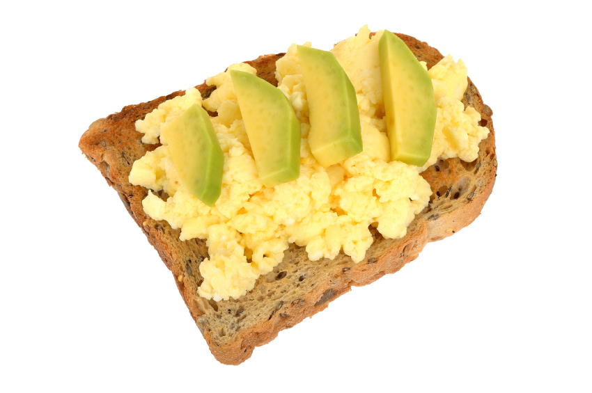 For a protein-packed start to your day, scramble up 2-3 eggs and eat with whole wheat toast and sliced avocado. Add some sriracha if you like it spicy!